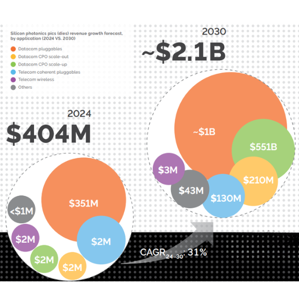 シリコンフォトニクスは、AI、ハイパースケールデータセンター、量子コンピューティング、医療用画像診断などを原動力として、次世代の接続性を変革する技術として台頭しています。シリコンフォトニクスベースのモジュール市場は、2024年の42億ドルから2030年までに248億ドルへと成長すると予測されています(年平均成長率35%)。 SOI、SiN、LNOI、InPプラットフォームなどの材料イノベーションが、帯域幅、変調、コヒーレント通信チャネルの進歩をどのように牽引しているかを探ります。